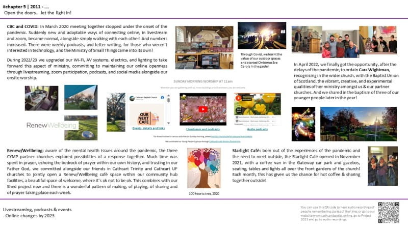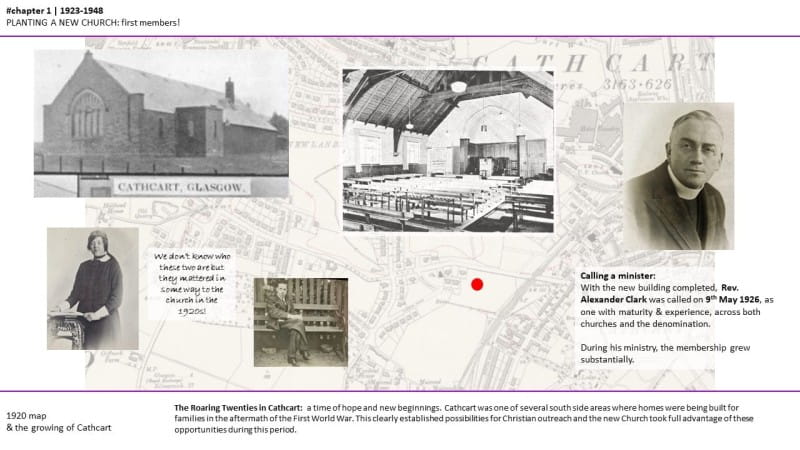 We installed timeline boards across the rear of the sanctuary for the Garden Party on Saturday 10th June 2023, showing a narrative in text & images of the development of the church across the first 100 years.